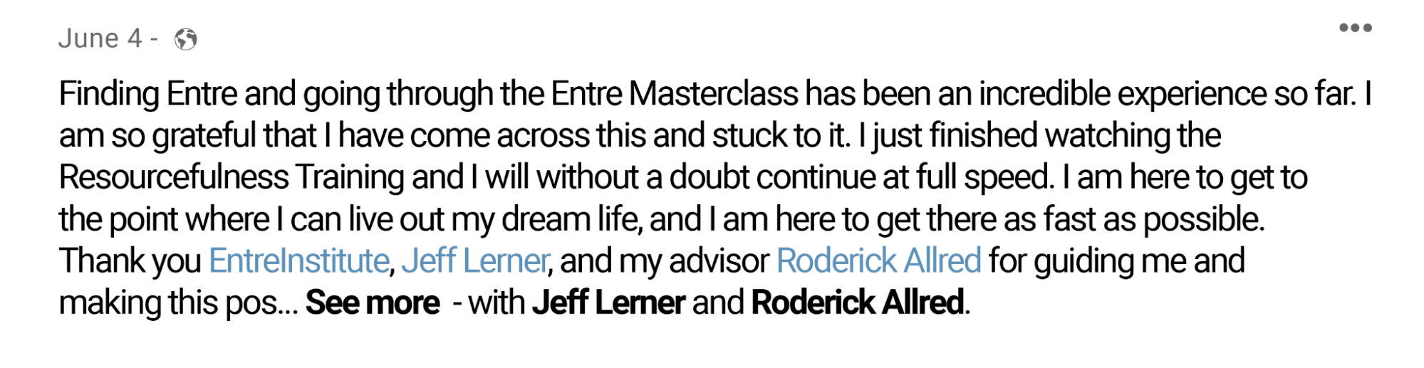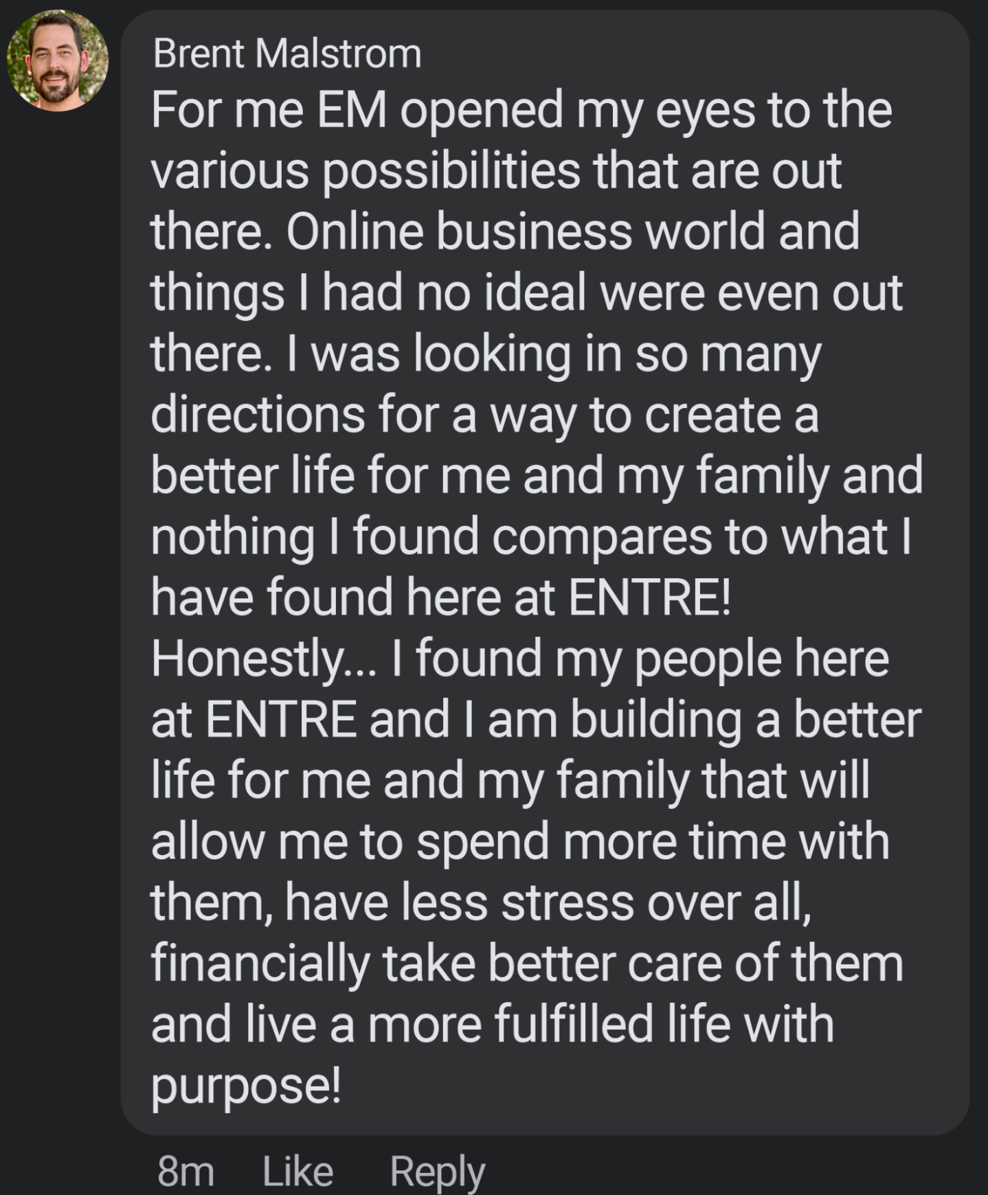 And as you read on you’ll see I’m inviting you to my exclusive limited-time Masterclass. It shows you how to escape and capitalize on this new opportunity. Over 200,000 men and women have gone through the Masterclass. They now know how to replace corporate America. To live a life that combines their passions and interests with a thriving business that fuels their life instead of draining it.